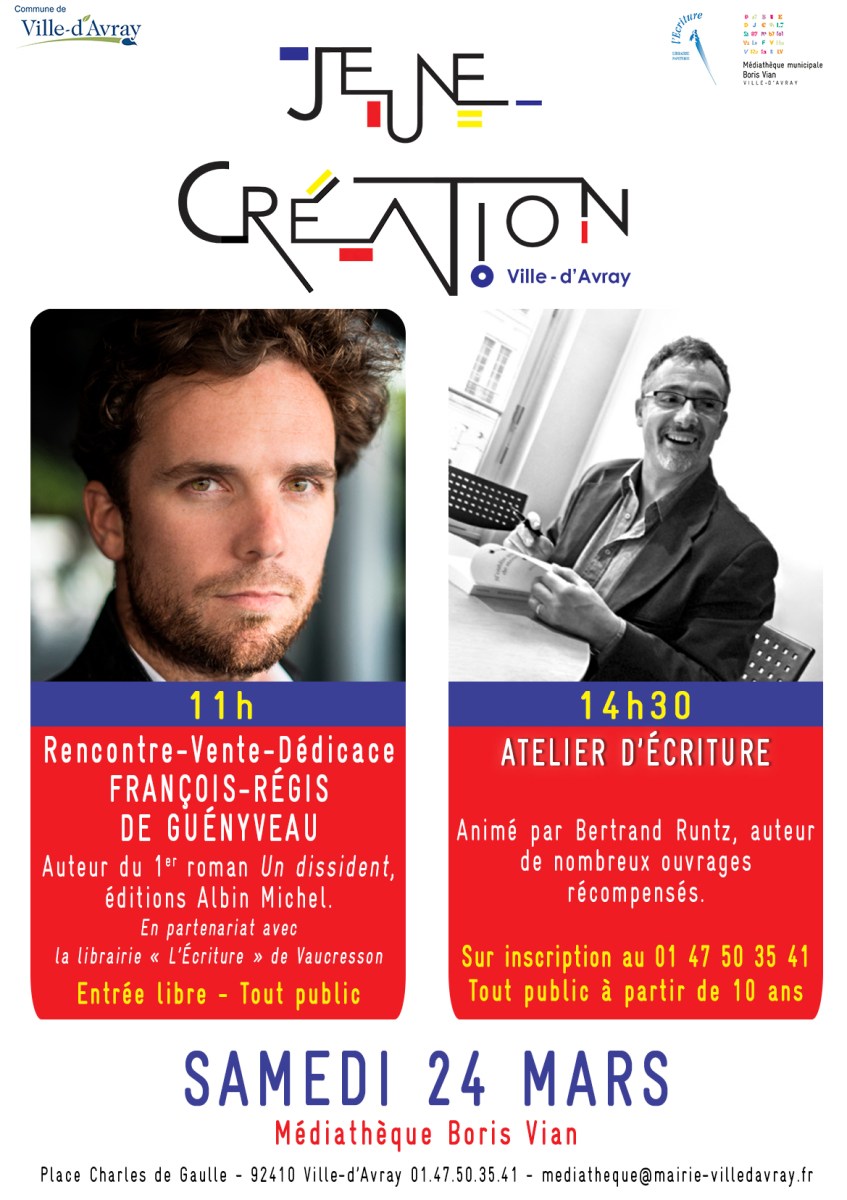 mois de la jeune création 3 Publié 9 mars 2018 à 1169 × 1655 dans Dates des prochaines rencontres/dédicaces/ateliers d’écriture & sculpture. ← Précédent Suivant →