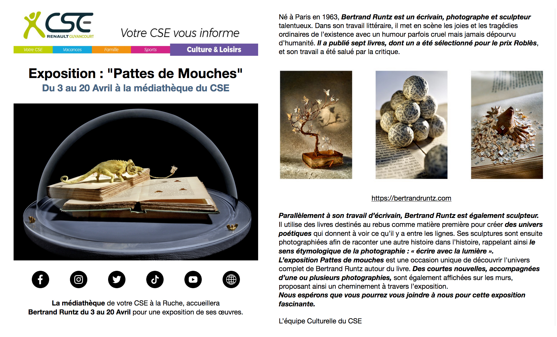 –2023 Photographies et sculptures à la Médiathèque du Technocentre Renault à Guyancourt.