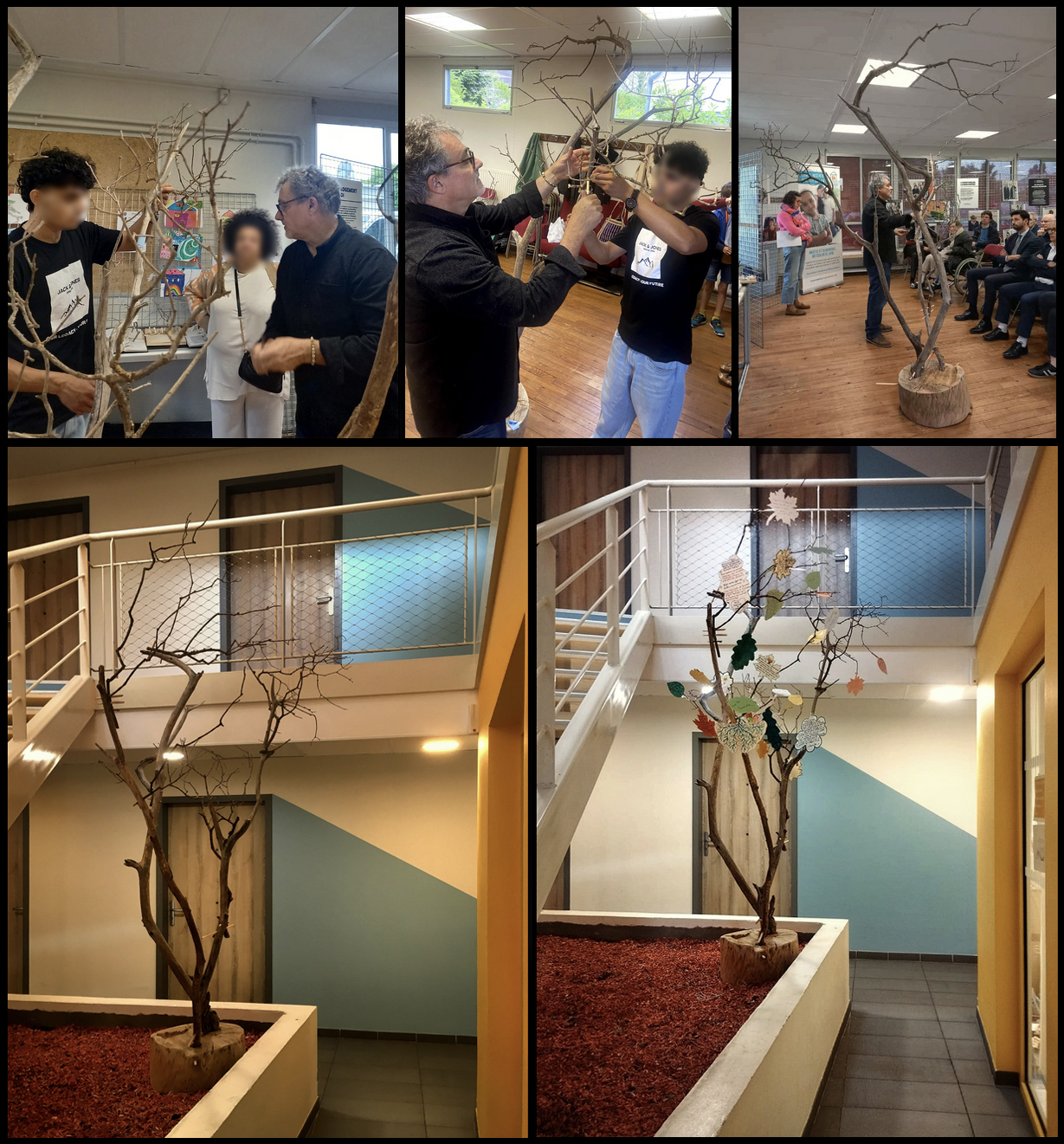 « Partant de l’idée que l’association Habitat & Humanisme est en quelque sorte le tronc d’un arbre aux racines fortes dont chaque branche accueille un résident, une famille, j’ai proposé de créer avec les résidents actuels et les anciens, un arbre à taille humaine dont chaque feuille serait porteuse d’un fragment de leur témoignage de vie à la Maison Intergénérationnel MOSAÏQUE de St-Jean-de-Braye. Cela a été un formidable moment de partage et de rencontre, où émotions et rires ont cohabité main dans la main, et dont la sculpture-arbre va désormais conserver la trace au sein de la maison, prête à accueillir d’autres feuilles pour les printemps à venir. «